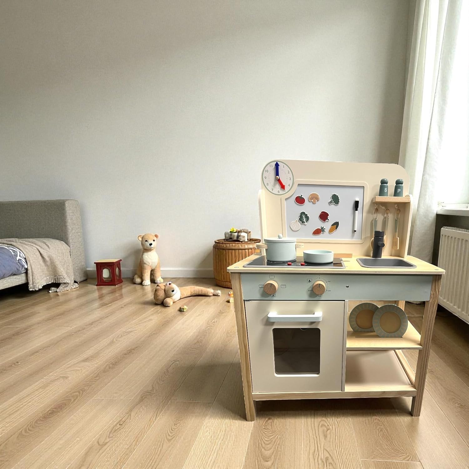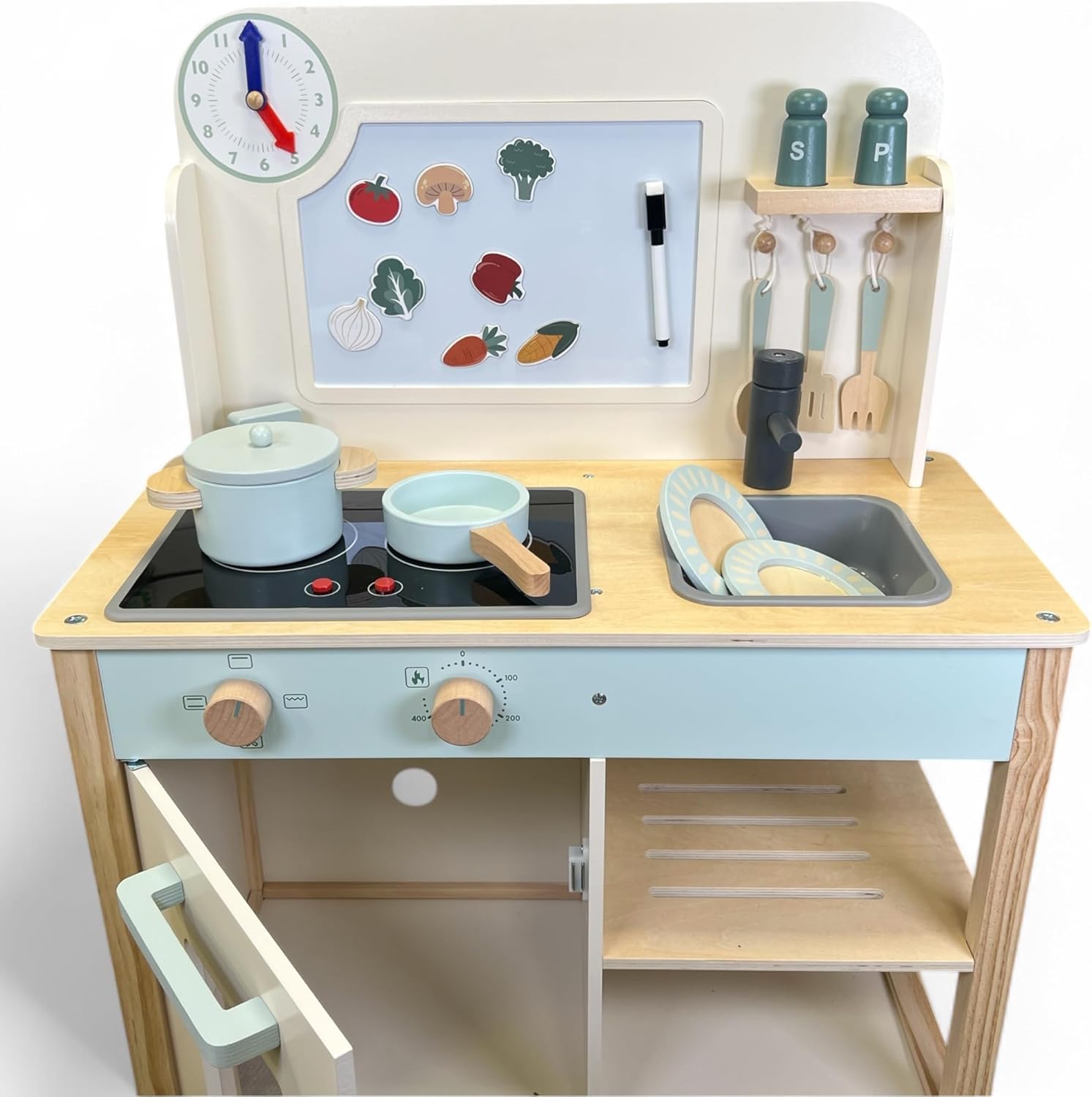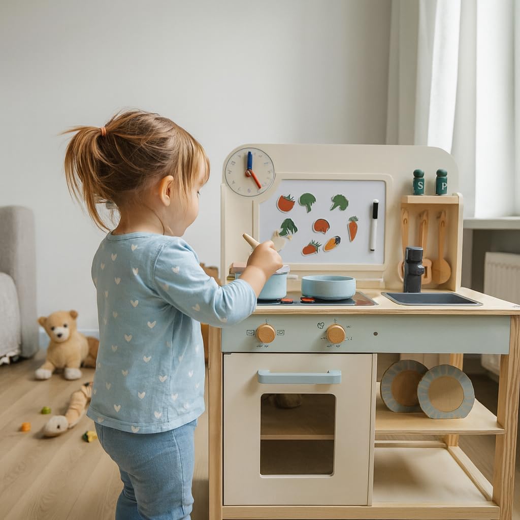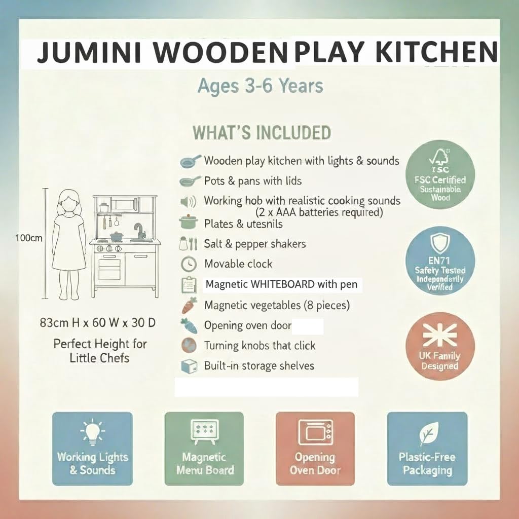 LAUNCH PRICE - Limited Time OFFER - Jumini Wooden Play Kitchen for Kids 3-6 Years | FSC Certified Toy Kitchen with Working Lights & Sounds, Pots, Pans & Accessories | Pretend Cooking Set